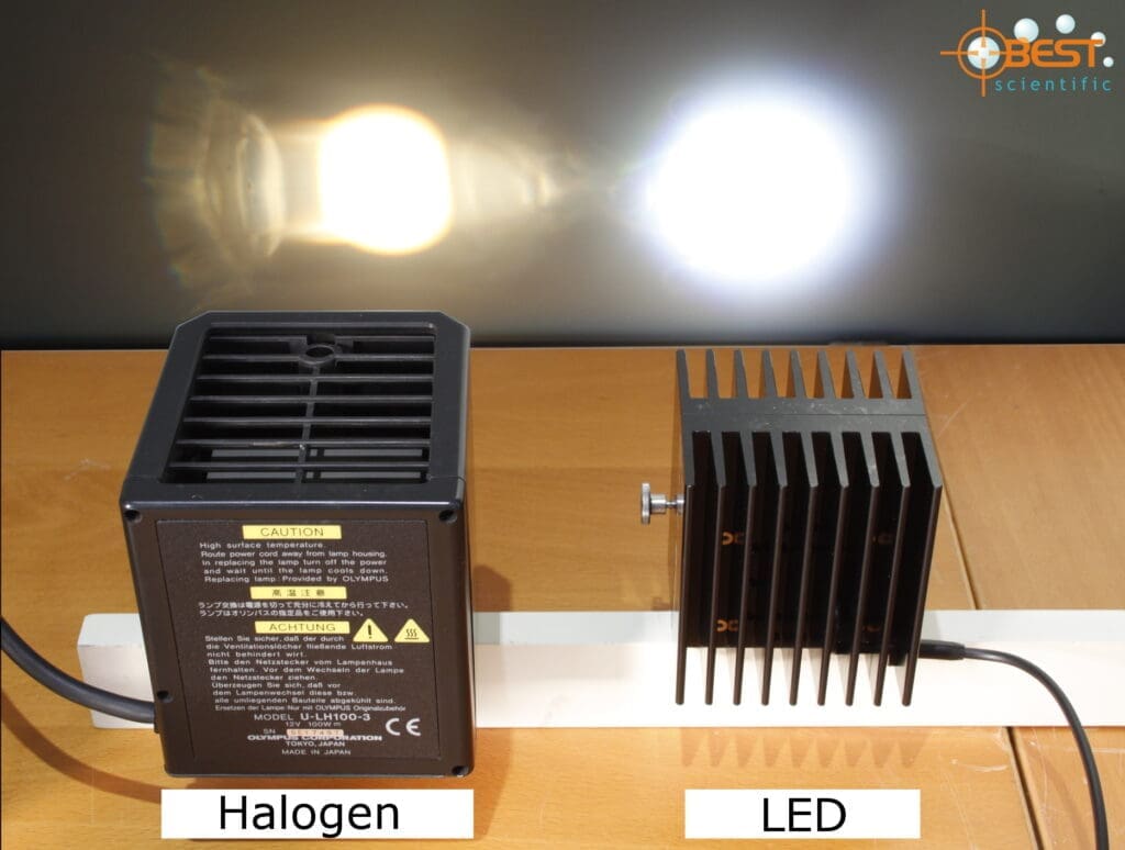 The LED upgrade was also desirable to the new user. You can see from the comparison image HAL vs LED, how much better the LED upgrade is against the Halogen in terms of output (Lumen power and Collimation) and kelvin factor (colour temperature). With many other positive attributes such as efficiency and consistency over time.